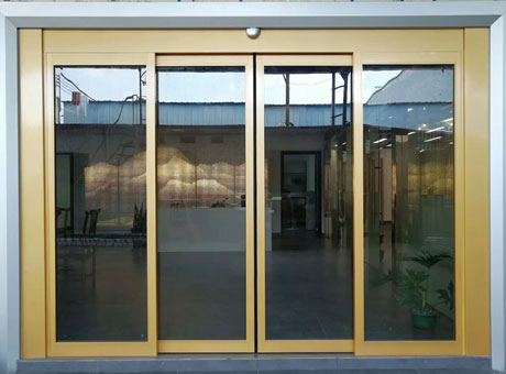 上海爱奇艺创新大厦香槟金氟碳喷涂两翼旋转门